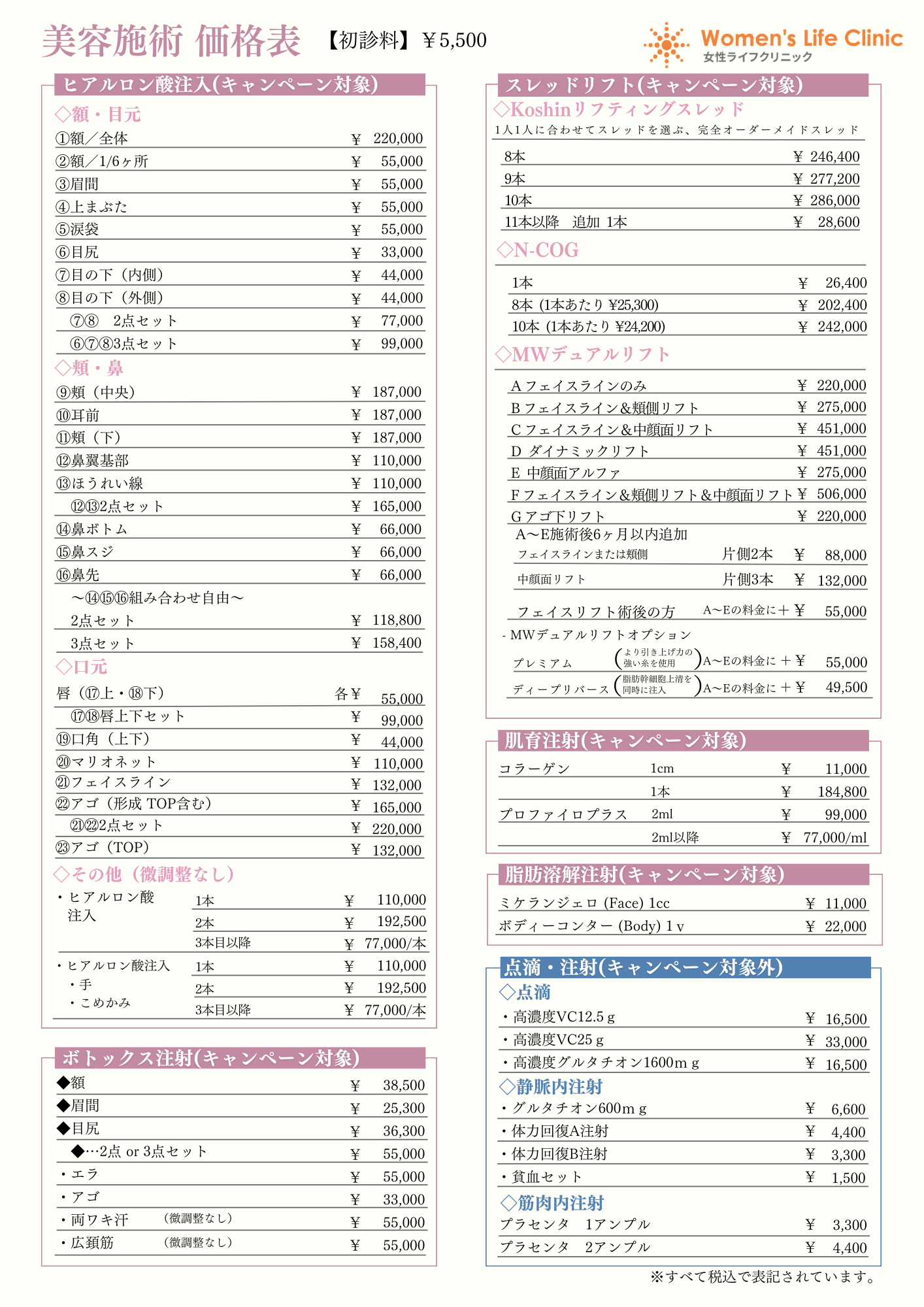 ※医師により施術内容・部位が異なりますので、必ずお電話にてご確認ください。